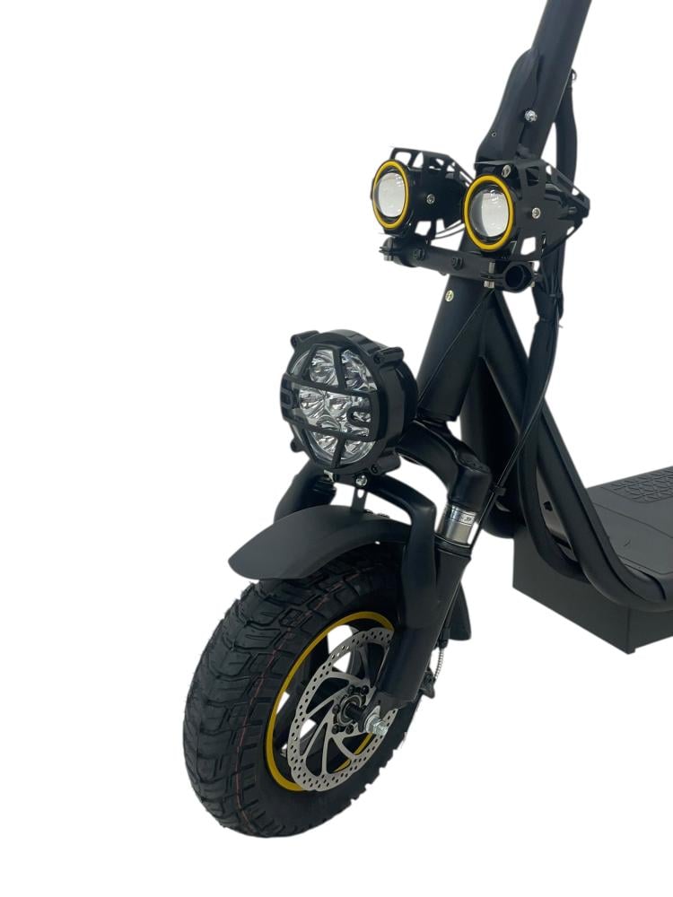 والإطارات تعمل بالهواء المضغوط وهي مقاومة للإنزلاق وقادرة على امتصاص الصدمات وايضا إضاءة أمامية للرؤية أثناء القيادة ليلا و إضاءة حمراء في الخلف لتنبيه المركبات القادمة من خلفك.